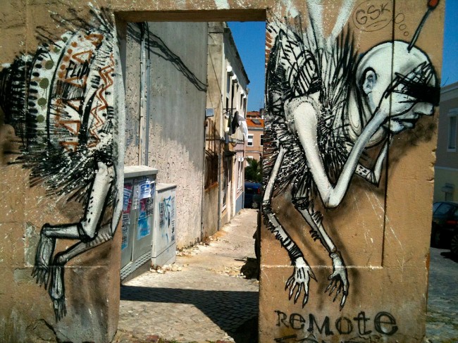 O que diz Lisboa? (Say What, Lisbon?) is a photography work by Laura Ramos, snapping pics from Lisbon street-art dated as far back as 2006 till the present time. This body of work will be shown this Saturday 14th from 5pm till 11pm at Espaço Nimas. There will also be a breakdance jam by 12macacos.