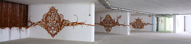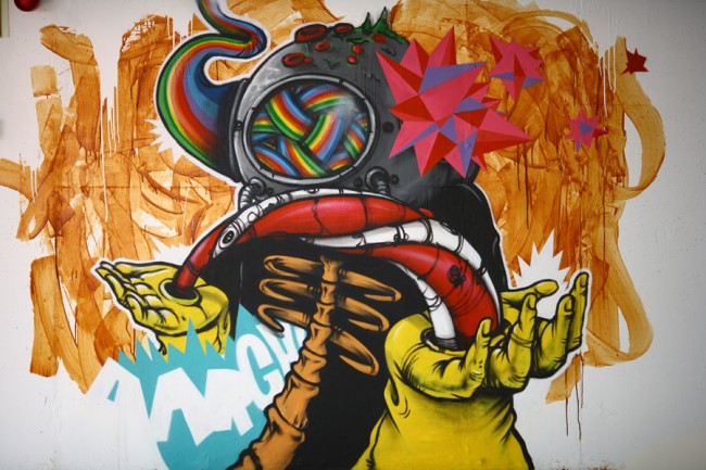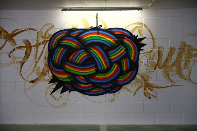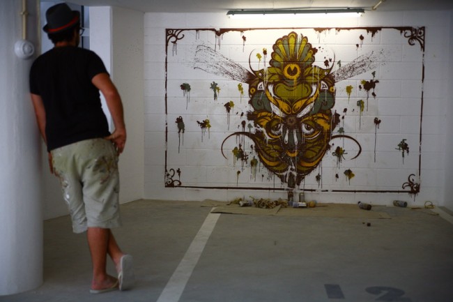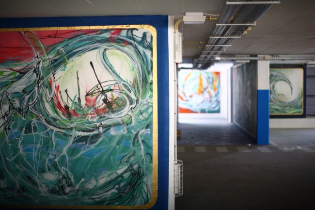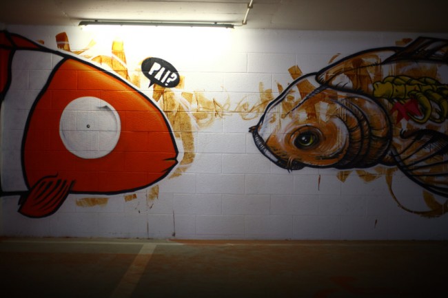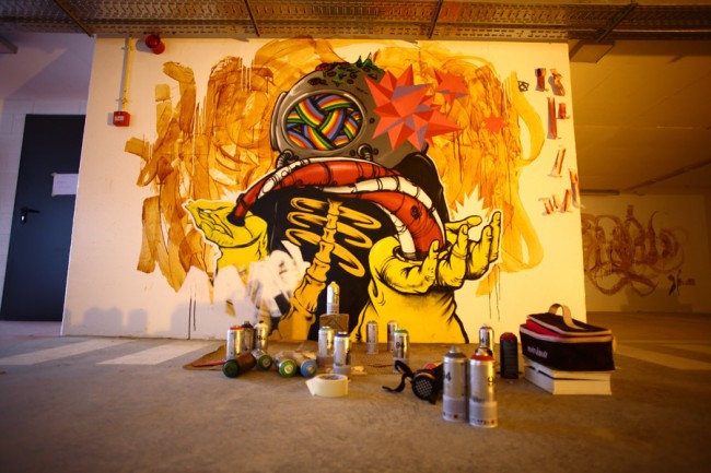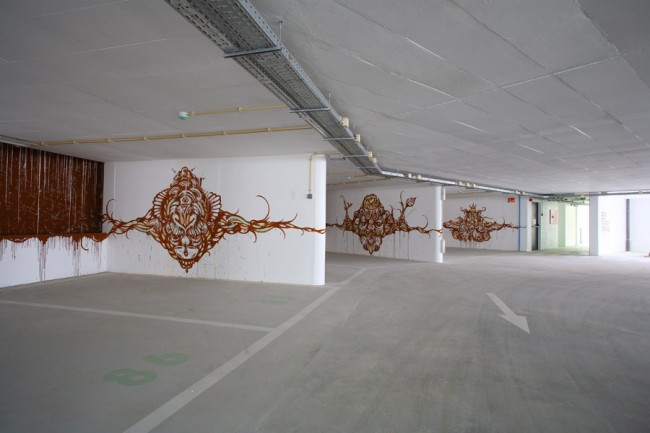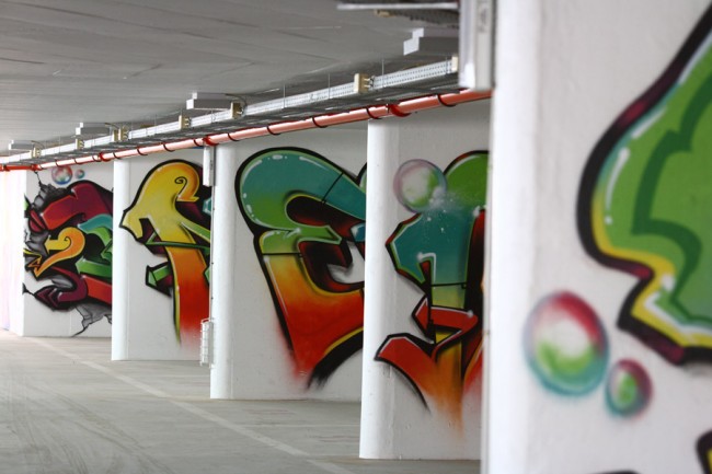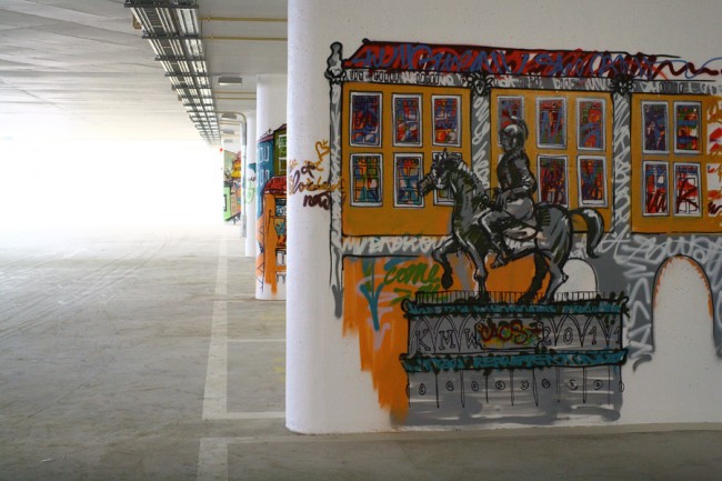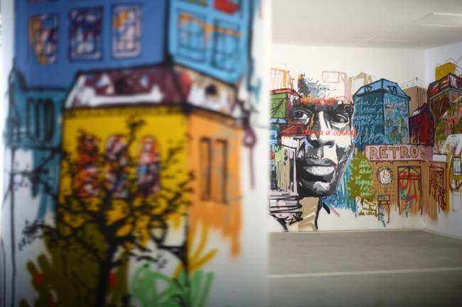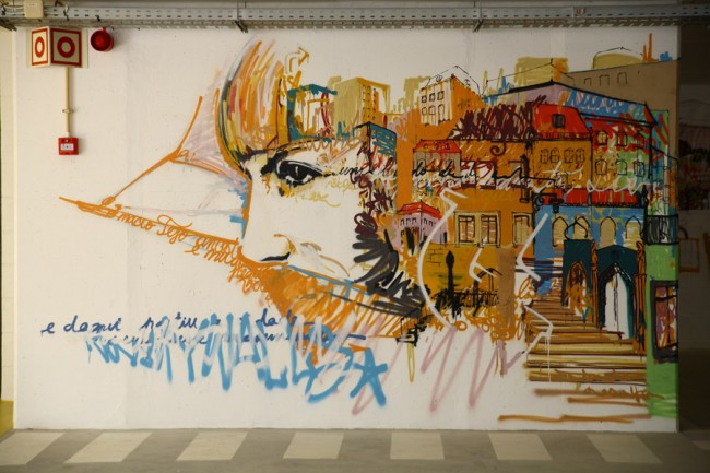 A project from EMEL and the City Council (CML) took 5 urban artists to decorate a new parking lot in Lisboa. Miguel Januário aka KissMyWalls, Mar, Nomen, Paulo Arraiano & Ram were the selected artists to act on the space. A big thanks to Duarte Lourenço, the photographer in charge of this post.