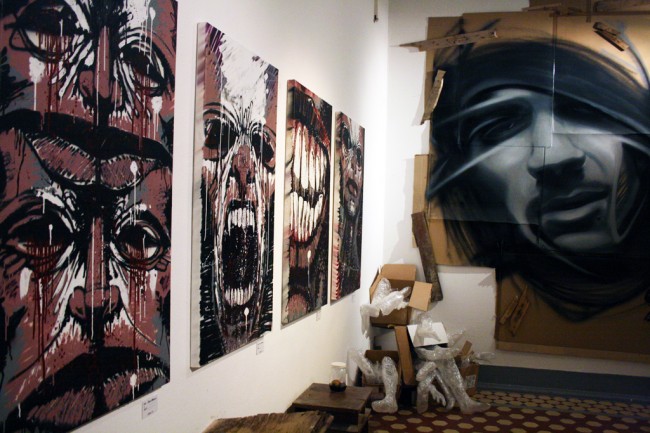 FABRICK P-01 is still on at Fábrica Braço de Prata, with the artists André Fernandes Trindade, Another, Ayer, Bonus, Frame01, Hesp, João Raul, Lg, Minimalanimal, Pluz & Skran. I gave a quick jump on the inauguration day, and will leave you with a very small sample of the pieces you can find inside.