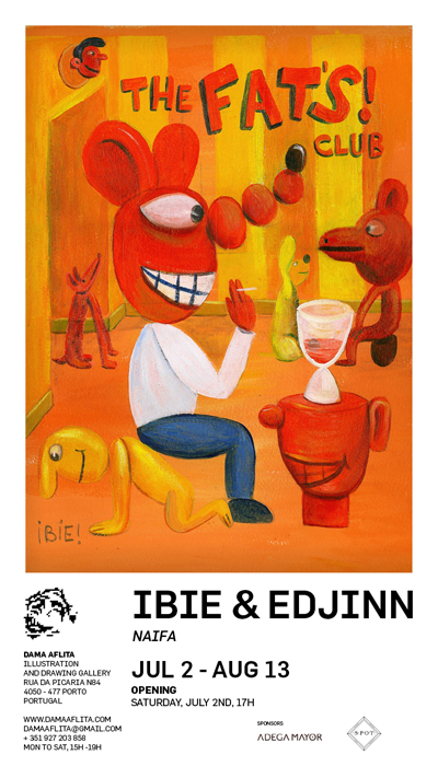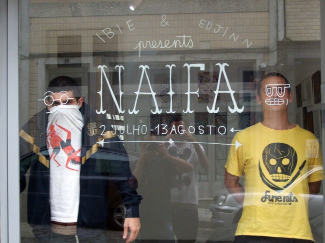 I’ve been following on the Dama Aflita gallery shows for quite some time, and it always strikes me at the awesome choices of the artists they take to their exhibitions. IBIE & EDJINN are some of those artists who just premiered the show “NAIFA”. Besides the show, they also found some time to leave some of their characters over at the social Factory. All pics by the artists, the Gallery and akaCorleone, who was also present at the opening day.