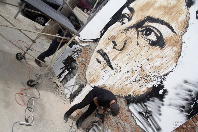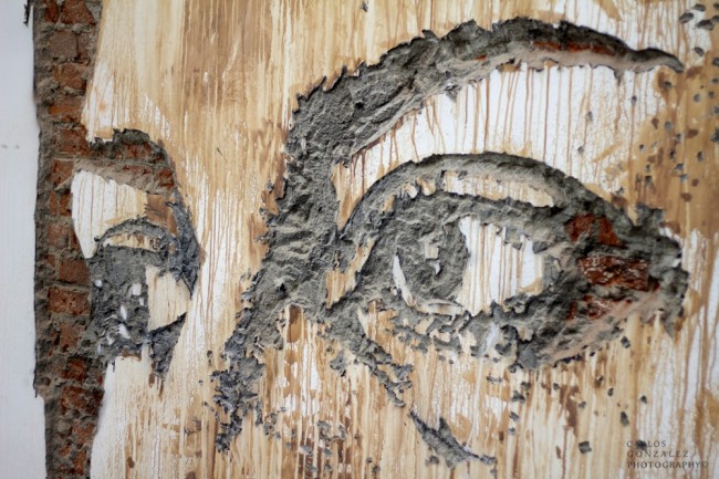 The latest from Vhils in Venice, California for the European Bailout Show at Post no Bills. A beautifully crafted video by Carlos Gonzalez can be seen inside, of the work in progress.
