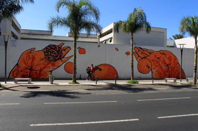 ARM collective travelled to Casablanca, Marrocos and left a big piece done with the spray cans they could find in the local shops. Took them a day to complete.