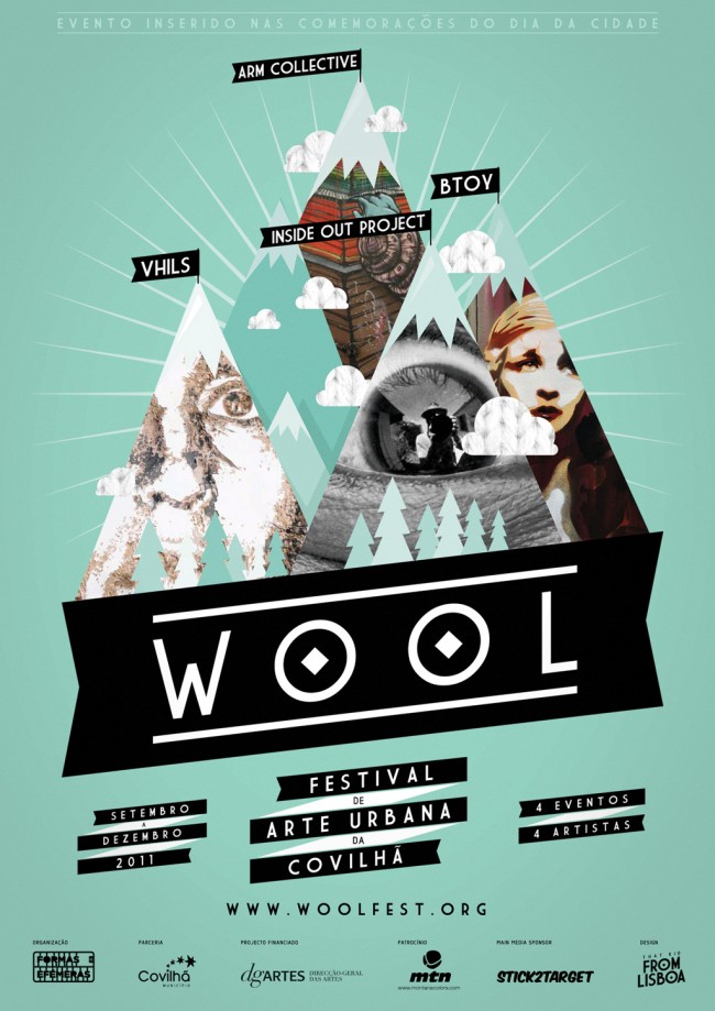 Proud to announce that a new urban art festival is about to begin, outside of the main cities of Portugal. WOOL is the name of the festival to take place in Covilhã, and it’s a pun between the word WOOL and its near-homophone WALL. Artists like ARM collective, Vhils, Btoy and the Inside Out project by JR are already part of the festival, which will have several on going events during the next months. It’s sure to say that more surprises will pop up in Covilhã soon. Poster and video teaser inside.