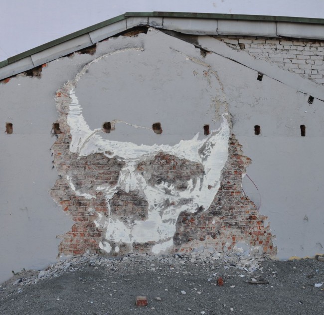 NuArt festival has been putting up events yearly with huge quality artists, and this year is no exception. Dan Witz, David Choe, Herbert Baglione, Lucy McClauchlan, Dolk, Herakut, Tellas, Escif, Hyuro, Phlegm, DVS1 and of course Alexandre Farto aka Vhils, were part of this year lineup. Vhils has left two new pieces in Stavanger, Norway, with a darker side showing on these new works.