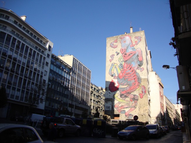As part of the Montana Shop & Gallery Lisboa anniversary, they’ve invited artist ARYZ to paint a building in the city centre. Once again, he did not disappoint with this huge wall painting in Lisboa. Amazing dynamic and colors to his characters. Don’t miss his show tomorrow night.