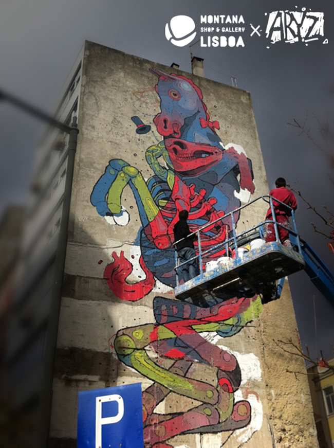 Montana Shop & Gallery Lisboa is about to celebrate their 2nd anniversary this Thursday, and by now (if you follow my facebook/twitter page) you already now that artist Aryz is in town and doing a massive wall in Lisboa. This is possible due to the efforts made by the Montana team and the GAU project (Urban Art Gallery) from the city council. For the anniversary of Montana, Aryz is also putting together a small show for the gallery. Flyer and info inside.