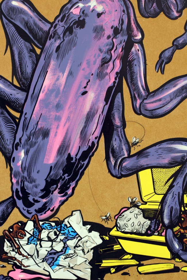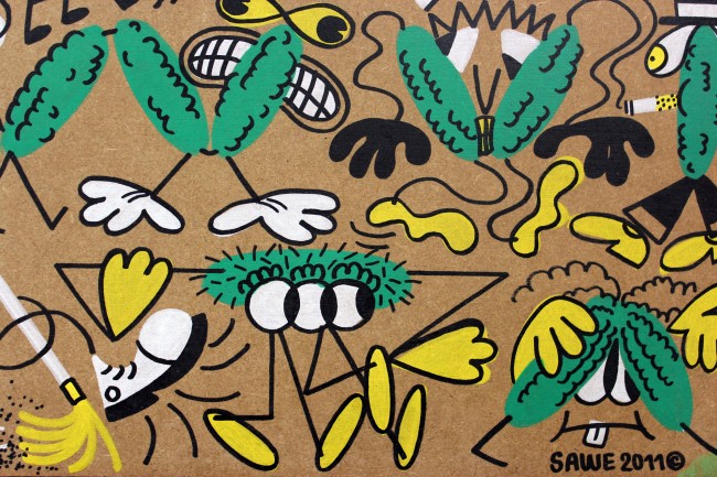 Montana‘s latest exhibition by SAWE is still live and can be seen for some more days. SAWE left these crazy illustrations of fast food & cockroaches spread on different mediums throughout the show. Check the gallery inside.