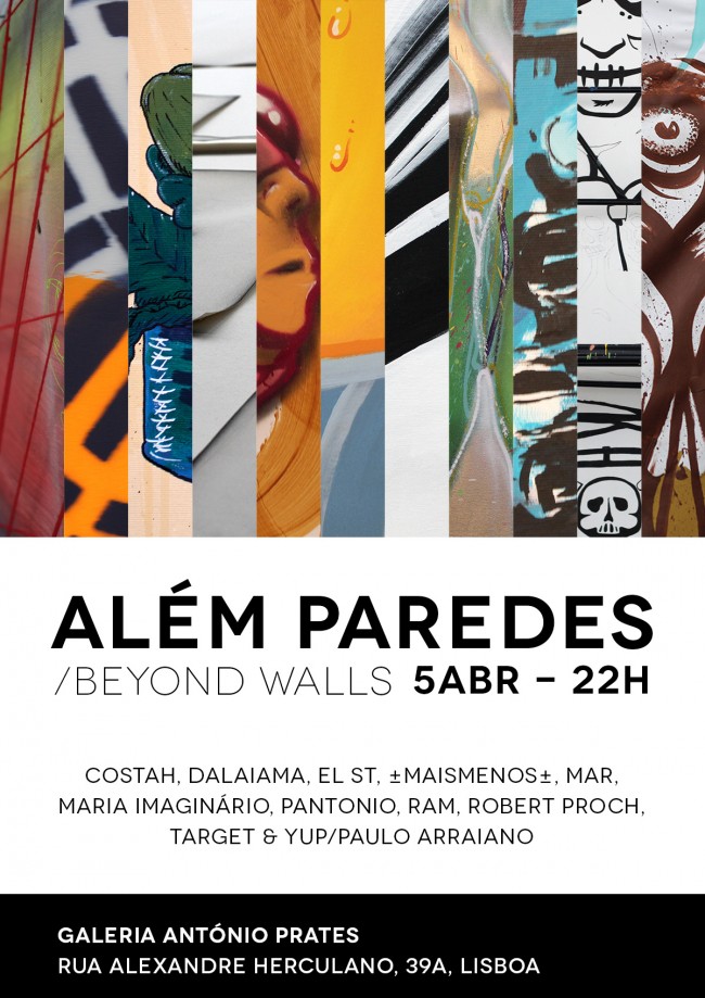 Collective show “Além paredes / Beyond walls” with artists Costah, Dalaiama, EL ST, ±MaisMenos±, Mar, Maria Imaginário, Pantonio, Ram, Robert Proch, Target & YUP/Paulo Arraiano is about to open this Thursday at Galeria António Prates. Put it on your calendars, it’s coming.