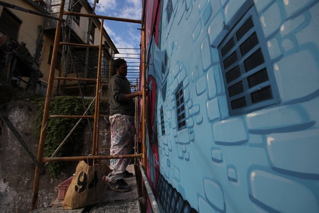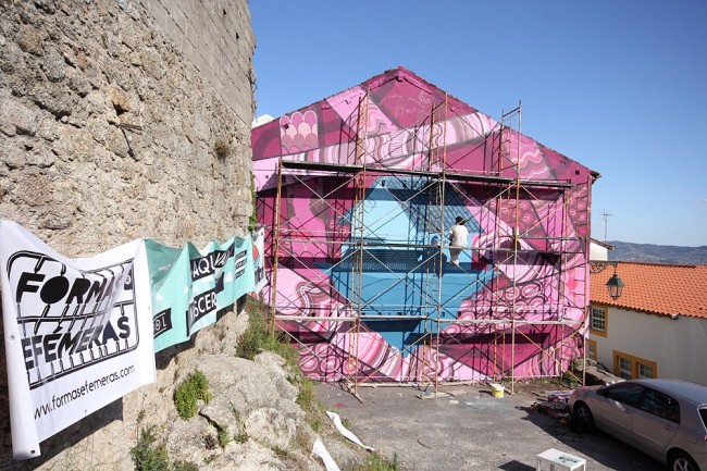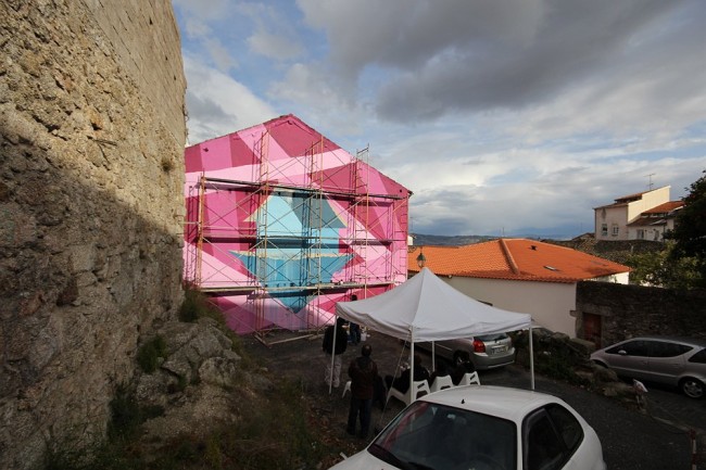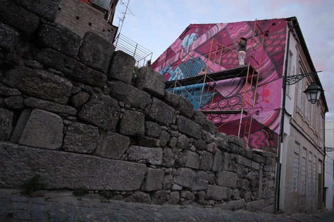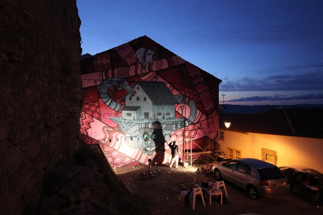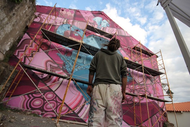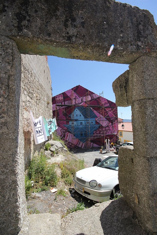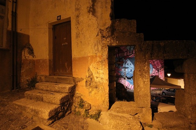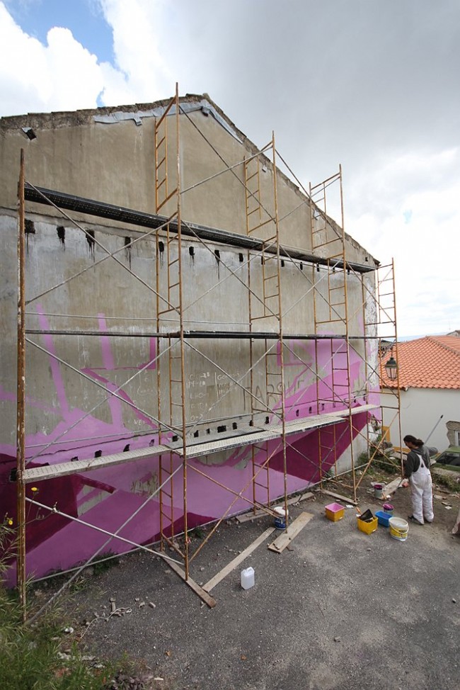 As part of the extra activities in Covilhã finest street art festival, WOOL had the presence of artist KRAM for a brief period of time, while the “Inside Out” project by JR doesn’t get to the finishing stage. KRAM painted night and day non-stop, working on this highly detailed piece in the city.
