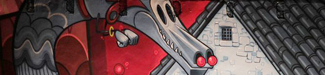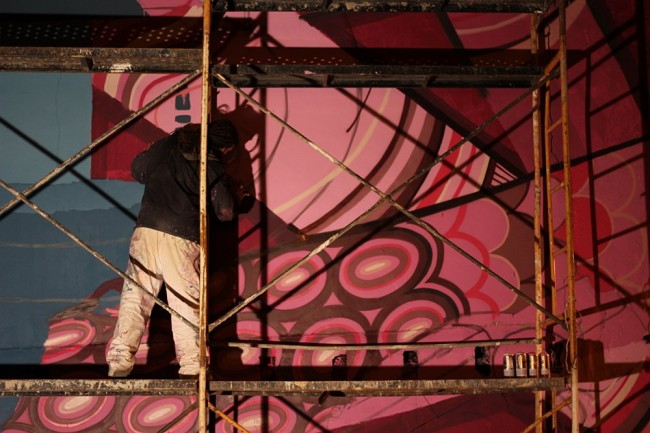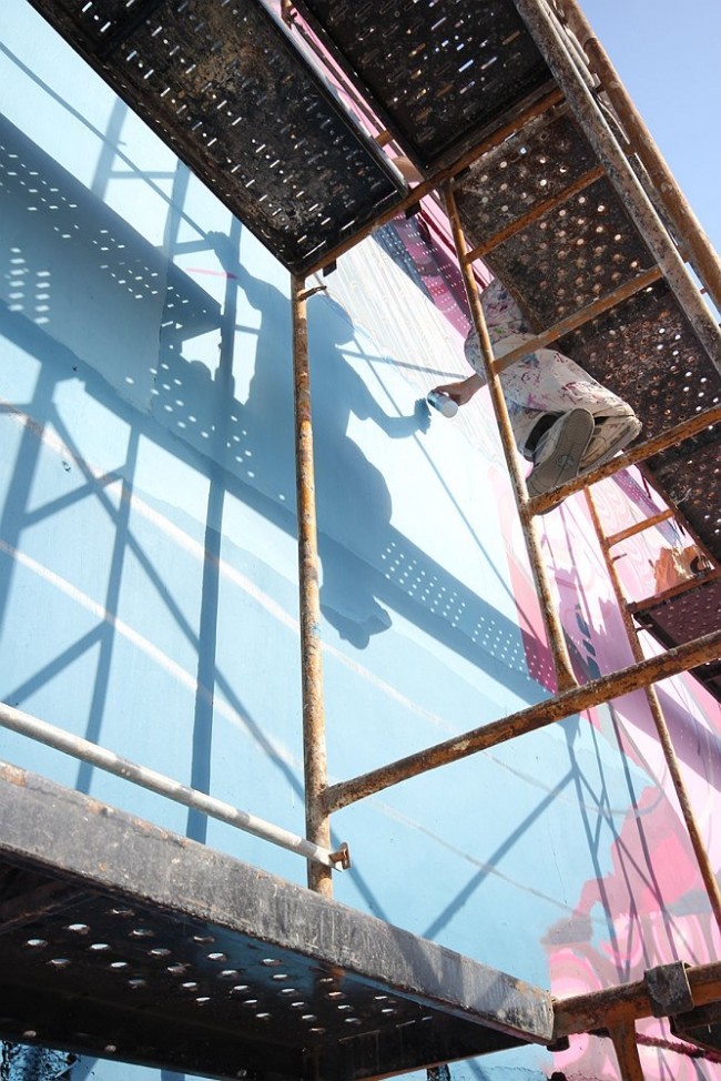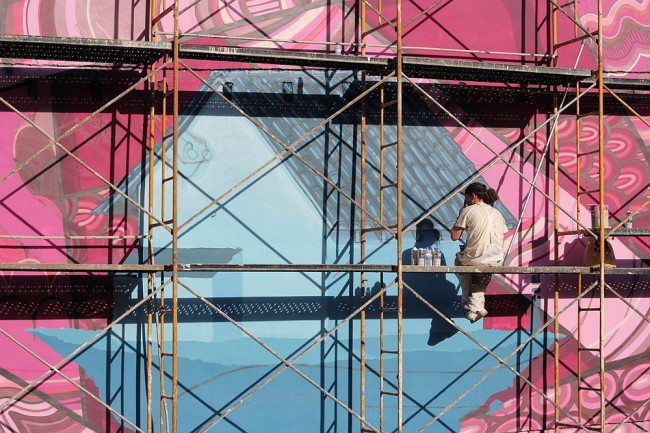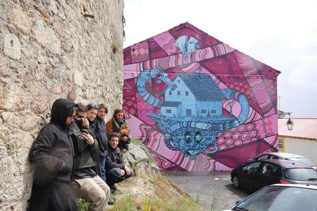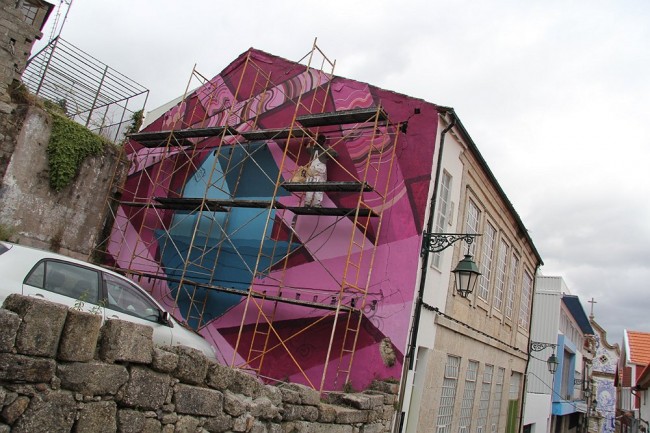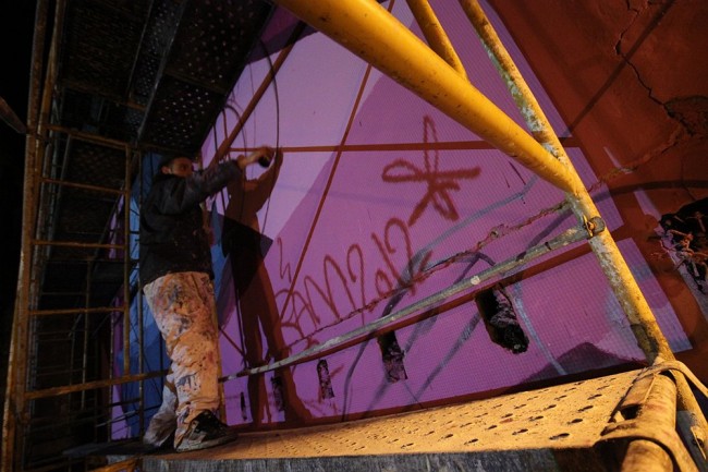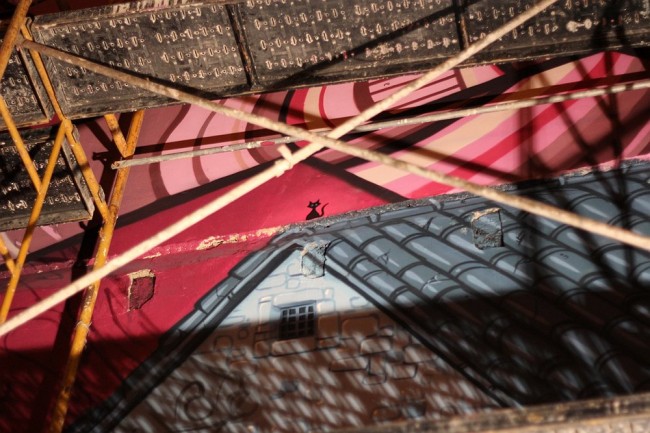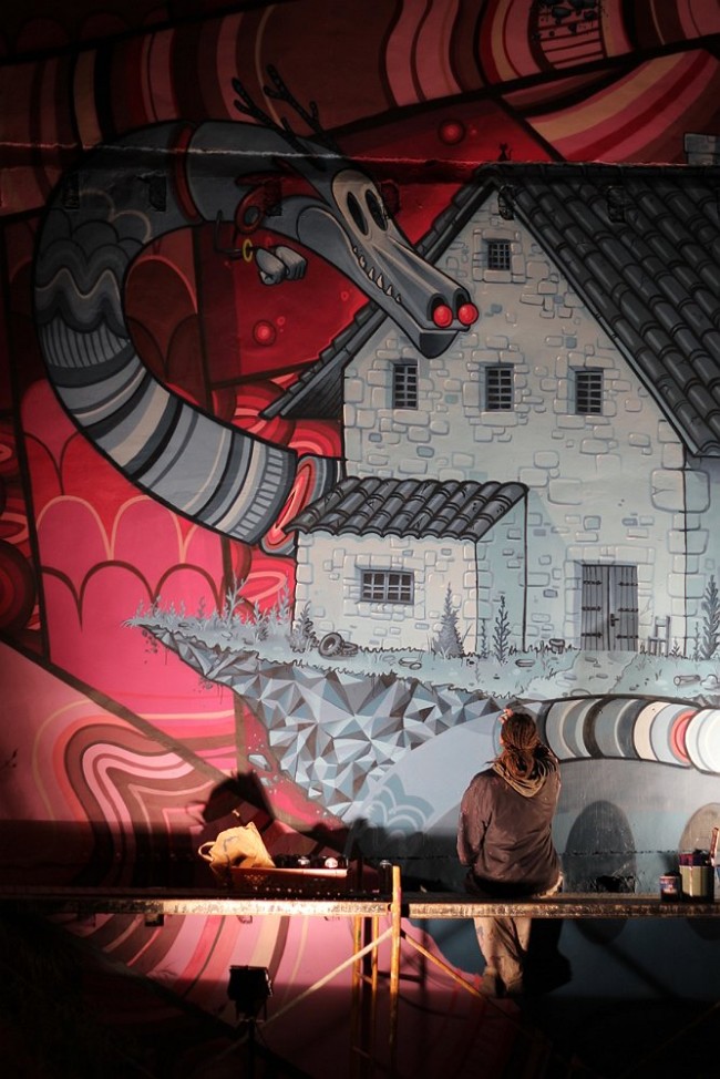 As part of the extra activities in Covilhã finest street art festival, WOOL had the presence of artist KRAM for a brief period of time, while the “Inside Out” project by JR doesn’t get to the finishing stage. KRAM painted night and day non-stop, working on this highly detailed piece in the city.