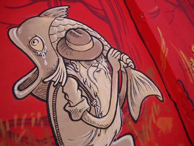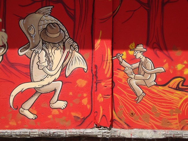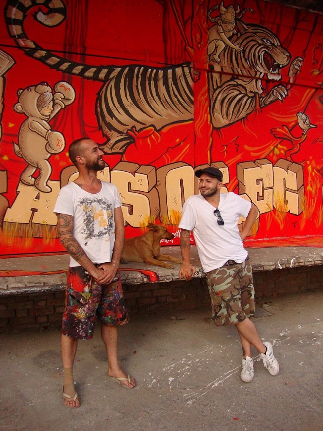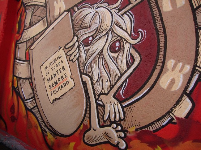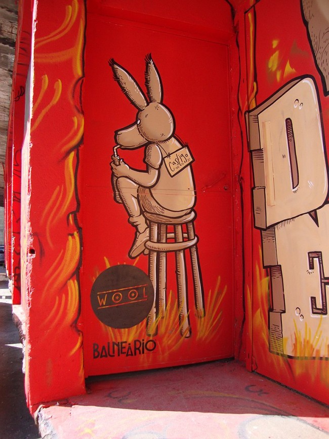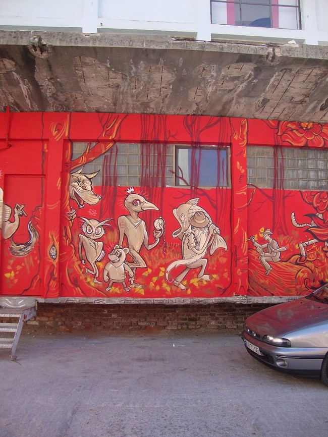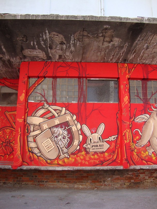 WOOL, the urban art festival from Covilhã together with Balneário, has been hitting Lisboa with “on tour” events always connected to urban art. Back at the Lx Factory Open Day, they invited several artists to paint some of the walls, and this is Mário Belém and Hugo Makarov brilliant execution.