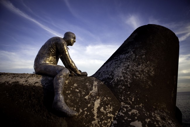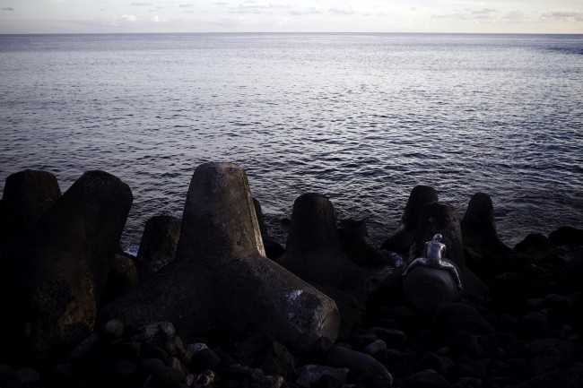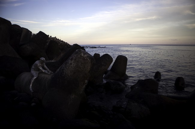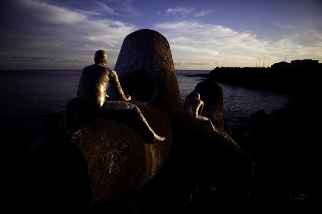 While on the island, Mark Jenkins and Sandra Fernandez did what they do best, tape sculptures. Near Arco 8, where Vhils has left his piece last year, you can find two sculptures riding to the ocean.