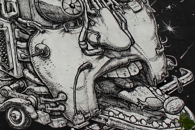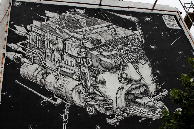 Liqen has left this crazy detailed piece for the Walk & Talk festival, entitled “soul eater satellite”.