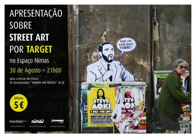 Tomorrow night, Nimas will be holding the premiere of “Women are heroes” by JR, a small showcase with photos of Portuguese street pieces and I (Target) will be giving a presentation on Portuguese street art after the movie. Show up.