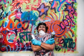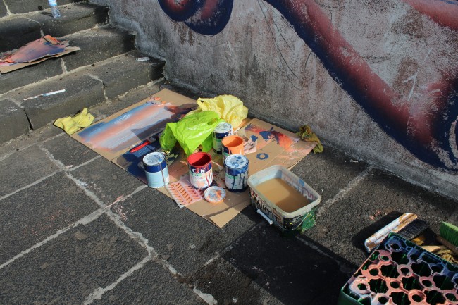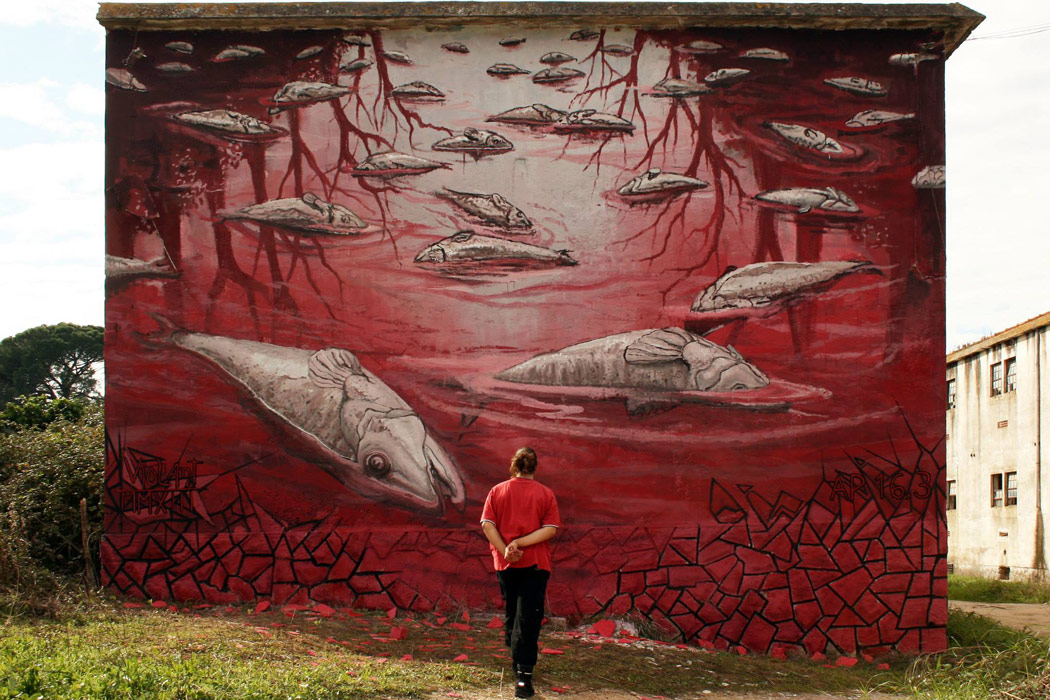 For the past days and nights, we’ve had our presentations over at PechaKucha, working on every projects, radio interviews for RNC and much more. Phil is working on his massive space ball made out of trash, creating awareness to the amount of disposables we produce each day, Roadsworth started a wall near the docks, Jennifer Stoner made a gig at the pools, Eime worked on an old door, Diogo Machado has already finished his wall at Portas do Mar, ColorBlind keep on working till the sun sets and Topo kept on painting at Rabo de Peixe.