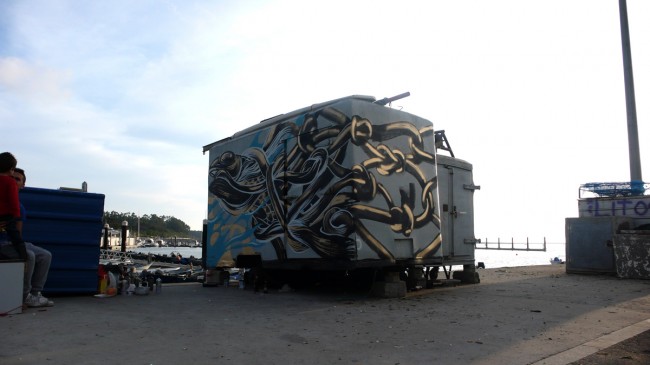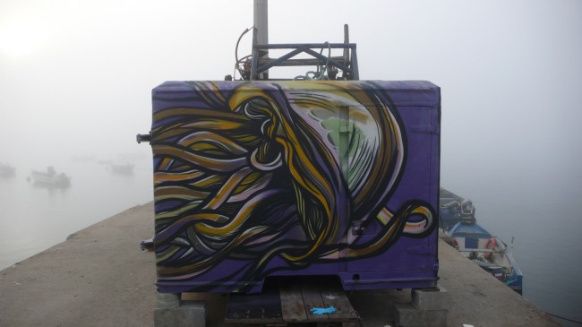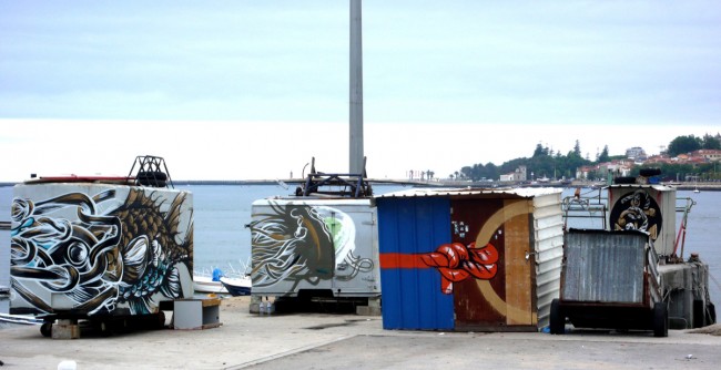 Pantonio continues his journey, and just took the time to stay in Afurada, Porto, with some local fisherman to learn the life around this activity. In return, he painted these pieces for the local people.