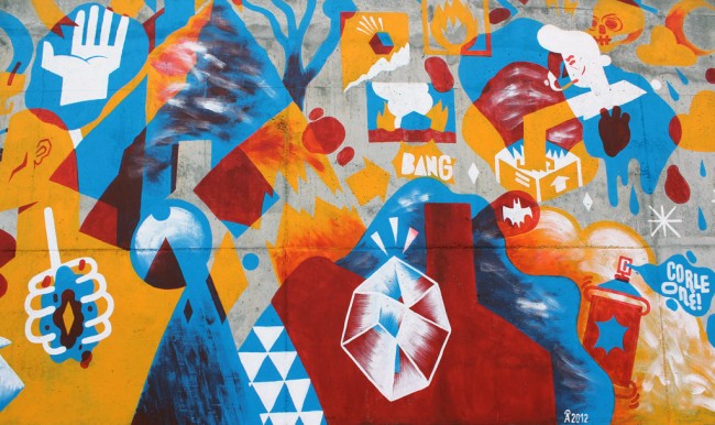 BD Amadora has been the stage for the yearly comics exhibition in Portugal, and this year they joined forces with GAU to produce two pieces with two different artists. One from the BD Comics world interacting in GAU’s space, and one from Urban Art interacting on to the BD Amadora space. This is akaCorleone‘s work at Forum Luis de Camões, Amadora. You can check Richard Câmara’s work here.
