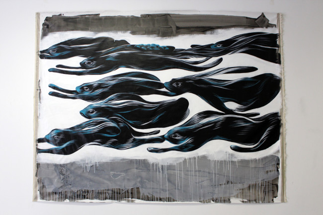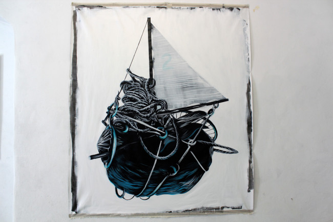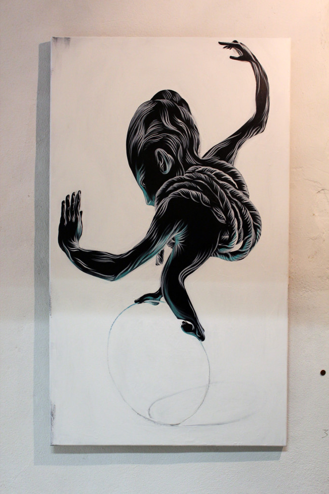 While Pantónio’s show only lasted a week, it was a good week indeed. Managed to find some time to head to his show and what a wonderful show it was. If you had the luck to get a tour to the space like I did, you’d find out that each painting has a story, an idea or thought behind it, making it even more enjoyable to read. One of the most coherent and expressional shows I’ve been in a while. Jump inside for a look of what is already out of display.