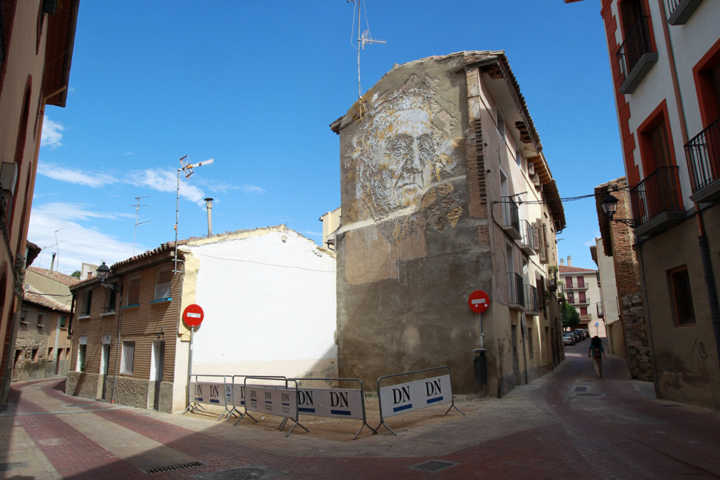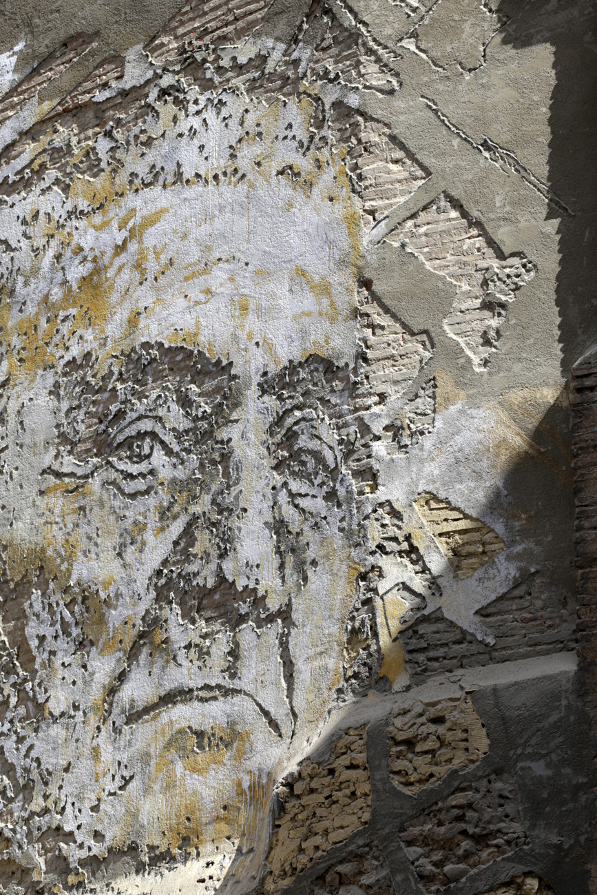 Avant Garde Urbano in Tudela, Spain, is currently counting with a great line up of artists like C215, Daleast, ElMac, Ron English & many others, including Alexandre Farto aka Vhils. This latest piece is based on a 100 year old photograph found at the local archive in Tudela.