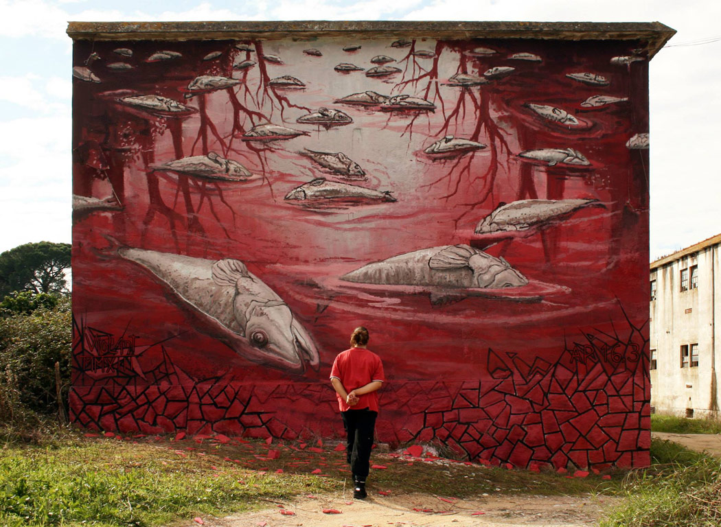 painting, streetsNovember 20, 2013 AP16.3 by Violant Keeping up with new walls, Violant has created another mural with a strong message depicted in the painting. Make sure you check more about him here. Photo by Sílvia Afonso Share on Facebook Twitter Pinterest Google + LinkedIn Email You may also like “Tormenta” by Violant Gaia by Violant “The Fall of Adam” by Violant Leave a ReplyYour email address will not be published. Required fields are marked *Comment * Name * Email * Website Δ