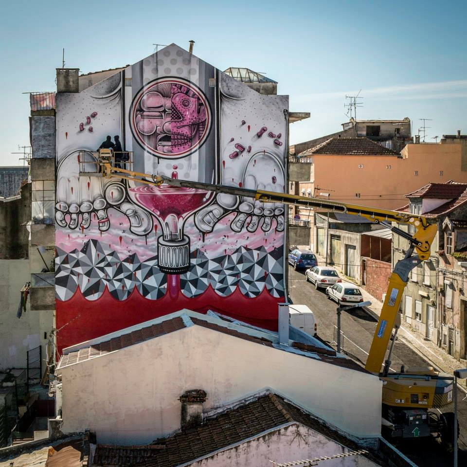 The last wall executed by How&Nosm for the Underdogs platform is finally complete. How&Nosm have recently finished another wall in Alcântara, Lisboa, which can also be seen here.