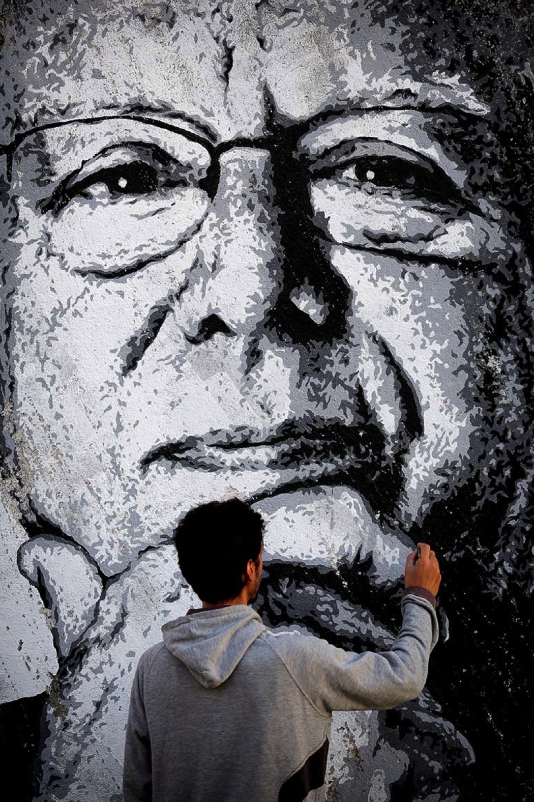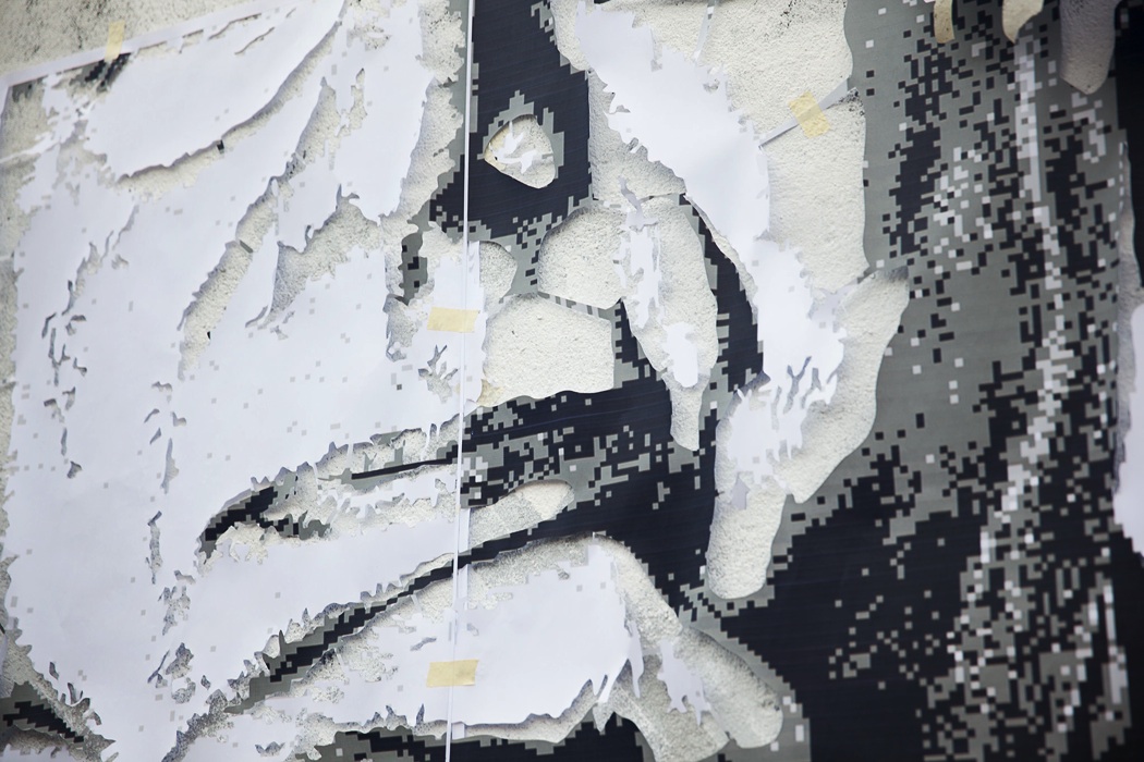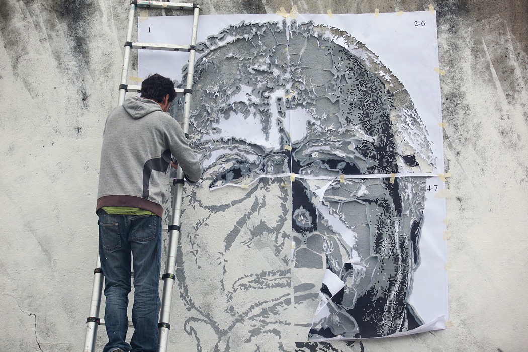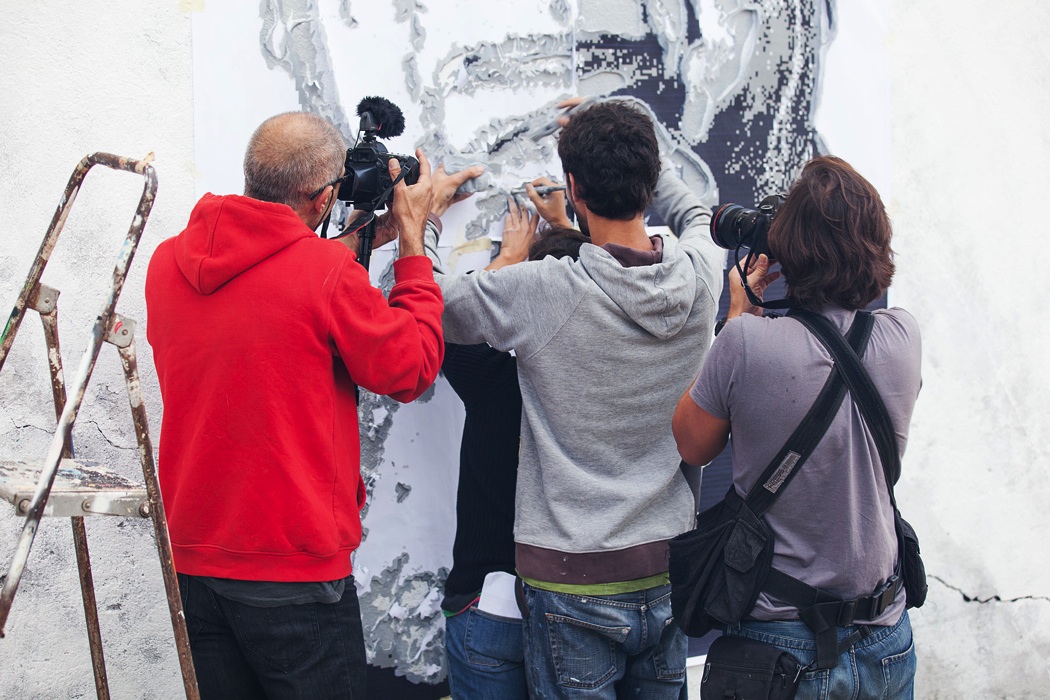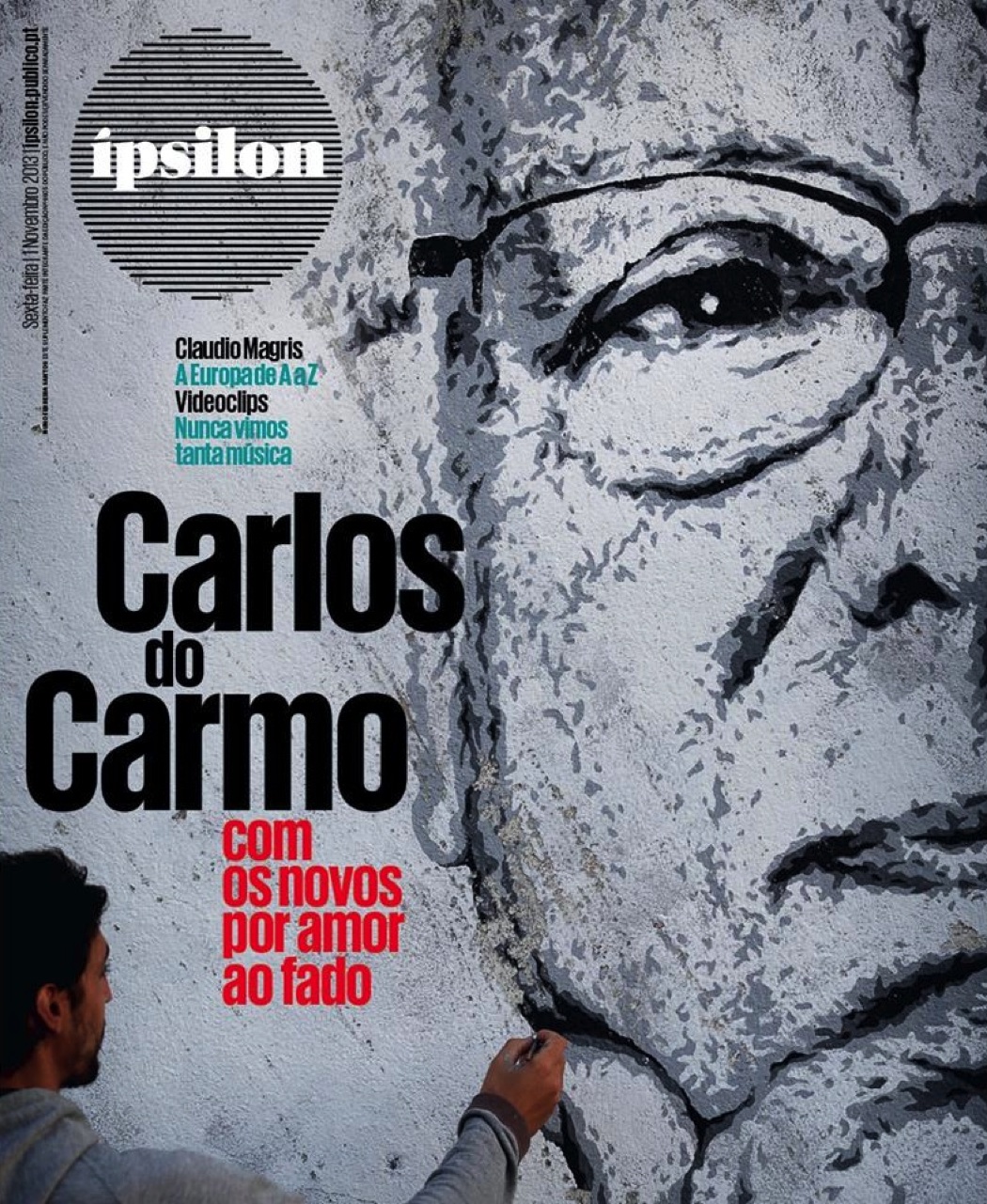 Artist eime has recently been invited to produce a piece, which would result in the cover of the magazine Ípsilon, from Público. The photo used, is the one that commemorates 50 years of career by Carlos do Carmo, and used on his latest fado album. This wall can now be seen in Calçada do Monte, Graça. For more info, check the video interview & the making of.