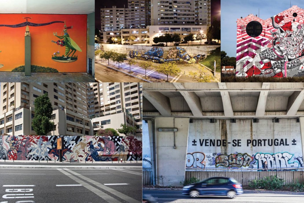 The exhibition features a selection of original artwork produced by each artist or collective following their short artist residency in Lisbon, while also taking a look at the various public art interventions created by them in the city during 2013, along with the exclusive screen print work they produced for the Underdogs.