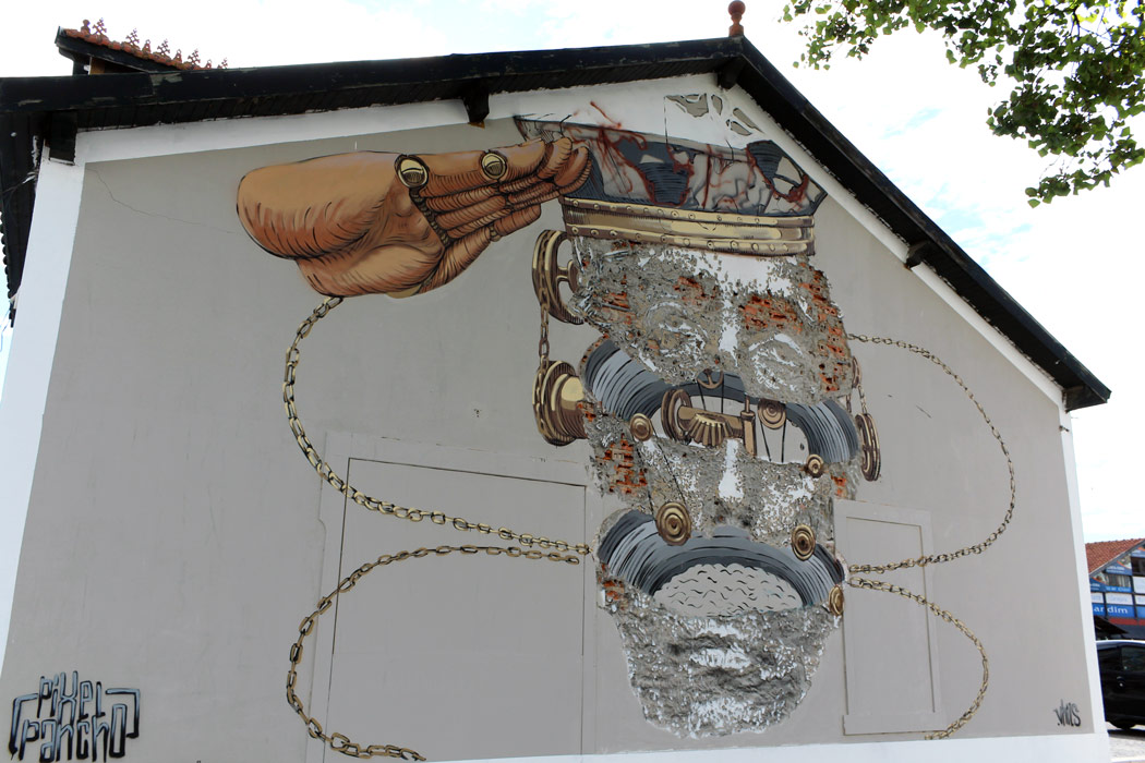 The second collaboration to come from Vhils & PixelPancho is the wall that faces the street in the building where two other pieces were executed for the Underdogs platform.