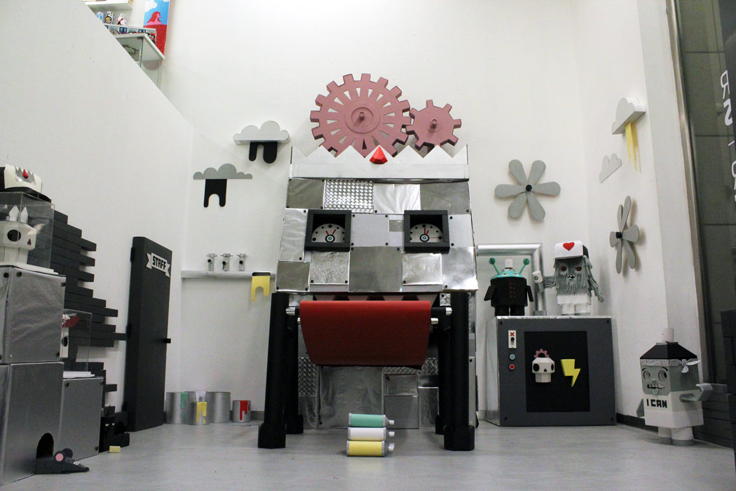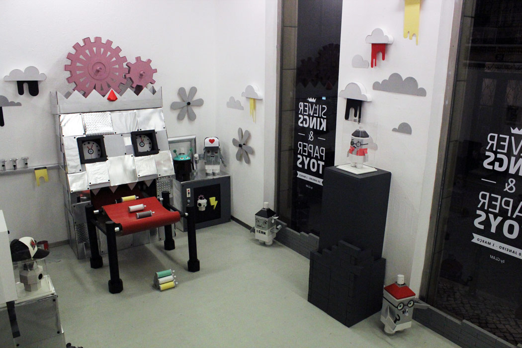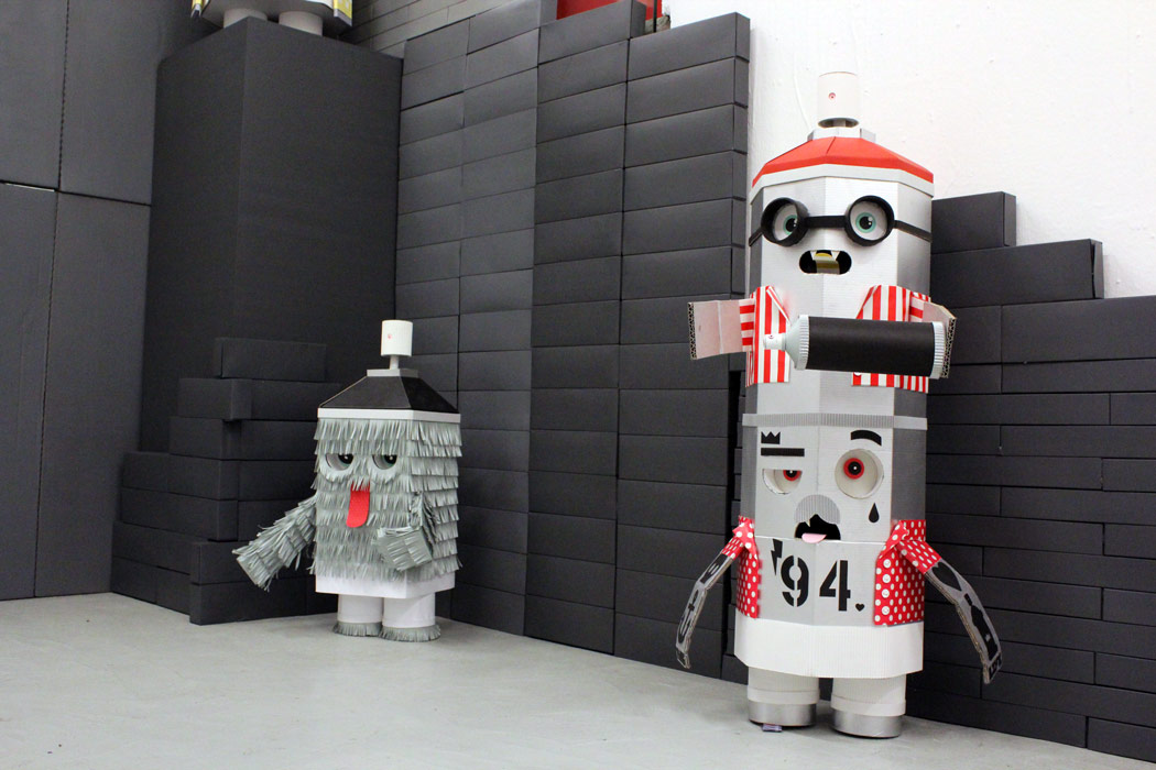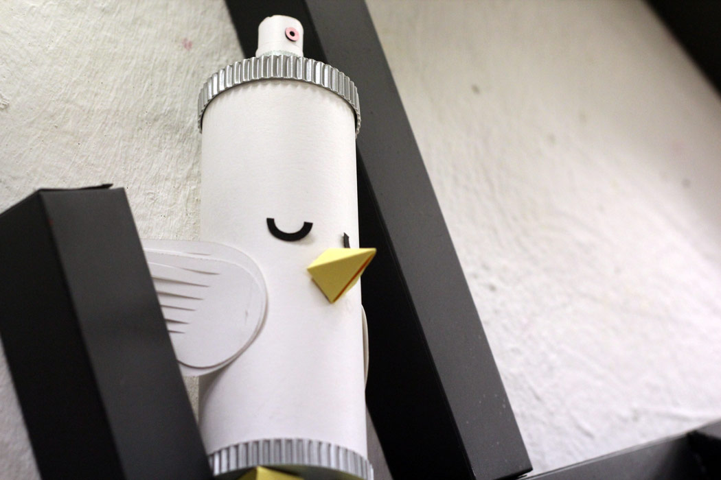 Still showing until March 1st is Glam‘s latest solo show at Montana Shop & Gallery Lisboa. The name “Silver kings & paper toys” invokes to “kings” & “toys” amongst the graffiti world, all wrapped in detailed paper sculptures of a spray factory. If you’re away and can’t make it before, here’s a wrap up of what you can find inside.