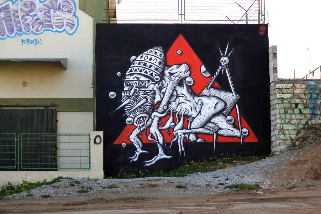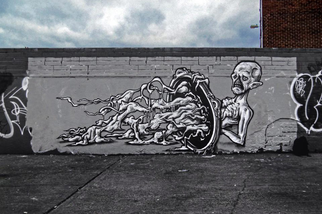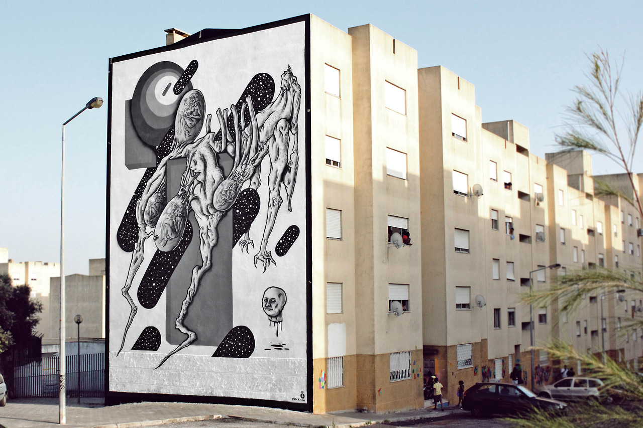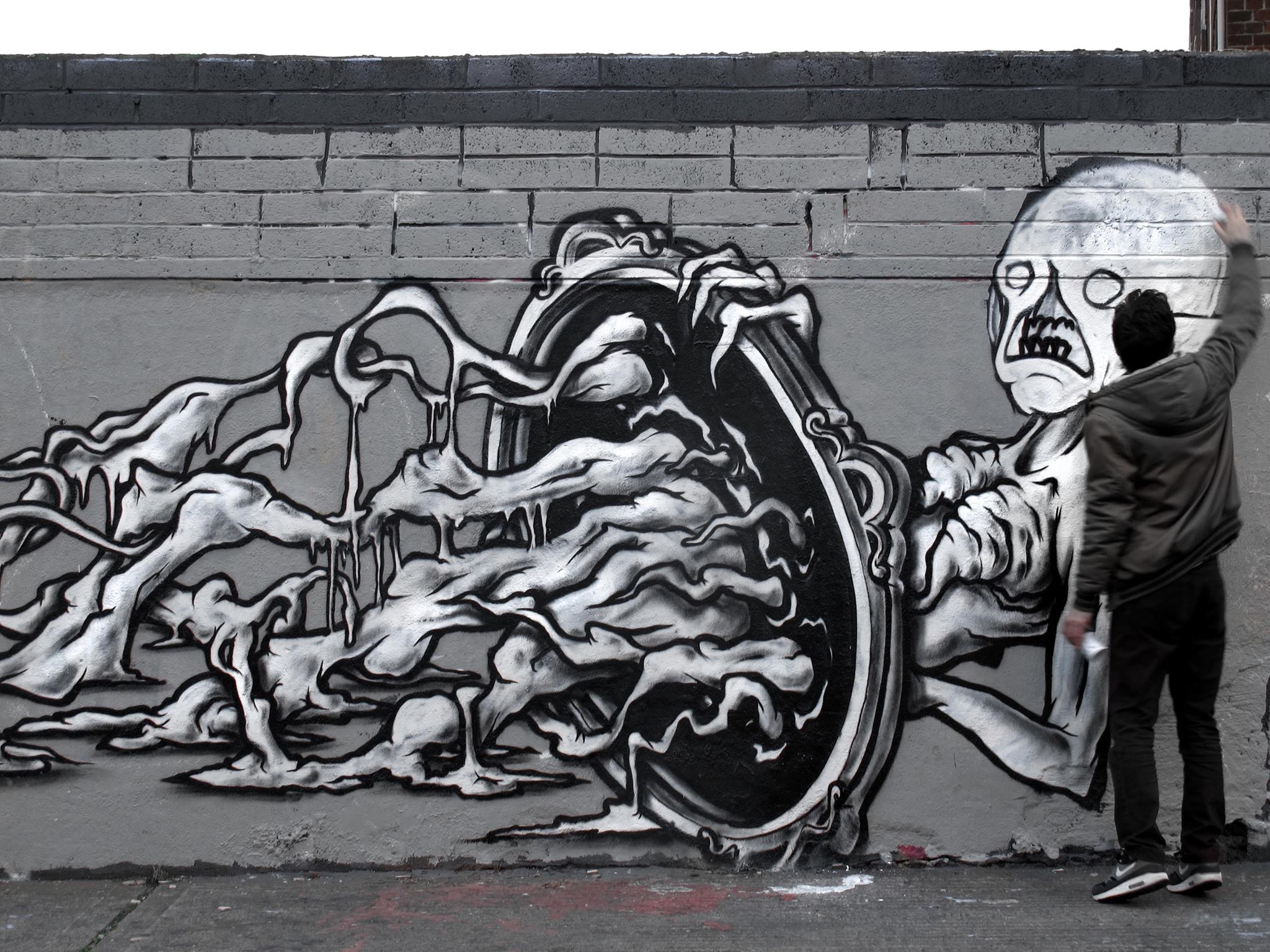 A new piece by Tosco in Dublin, with the signature black and white colorway. Slime, portals, creepy creatures and much more.