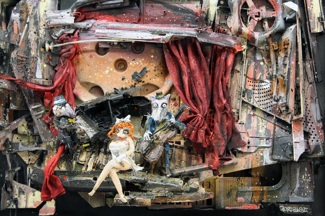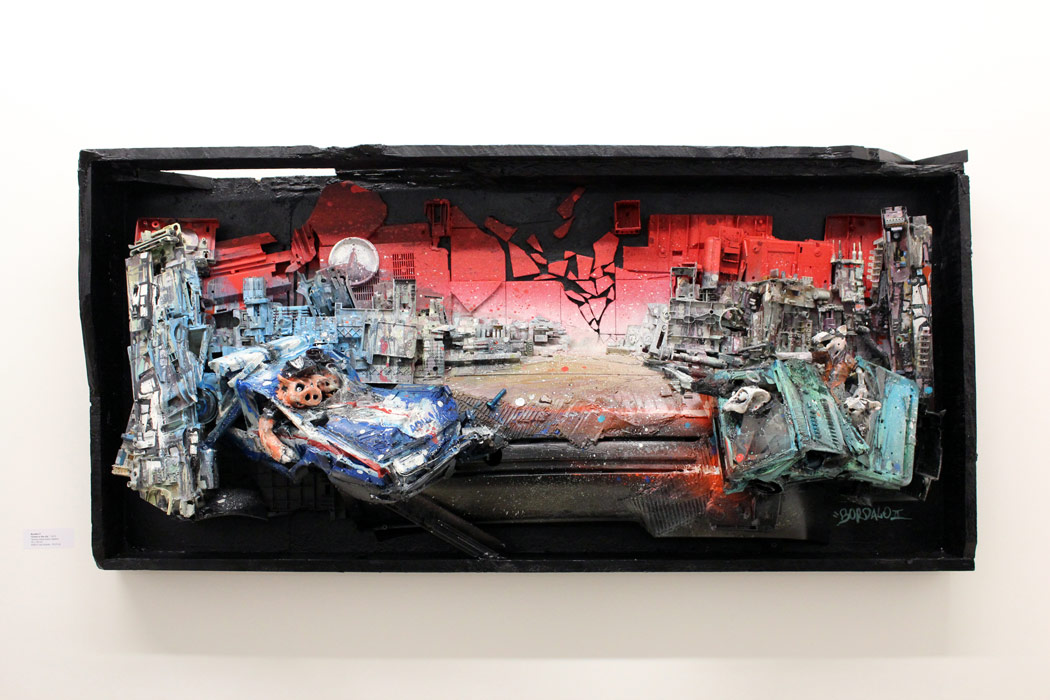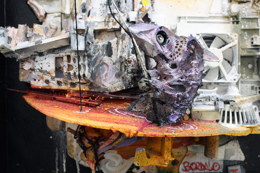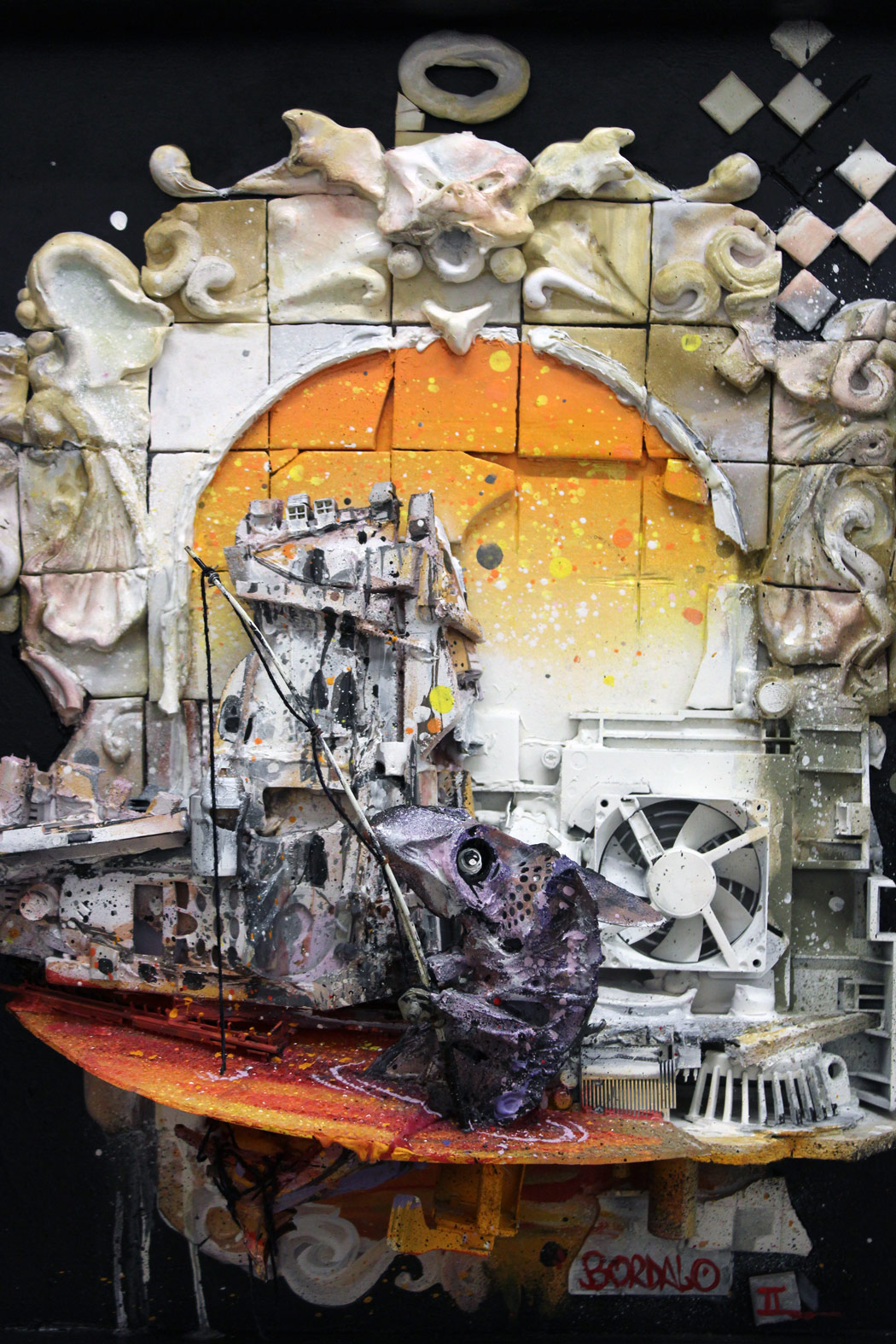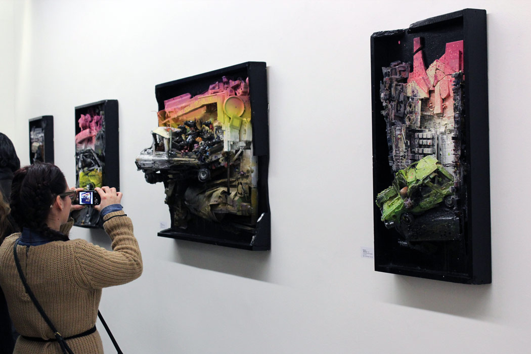Solo show “World gone crazy” by Bordalo II debuted last week at Arte Periférica Gallery, and we managed to make it to the opening. With a packed exhibition and a great number of artworks, it was easy to get lost in all the details and analogies depicted in the pieces. A great body of work in these sculpture paintings, to be seen until Feb 18th. Make sure you see them live.