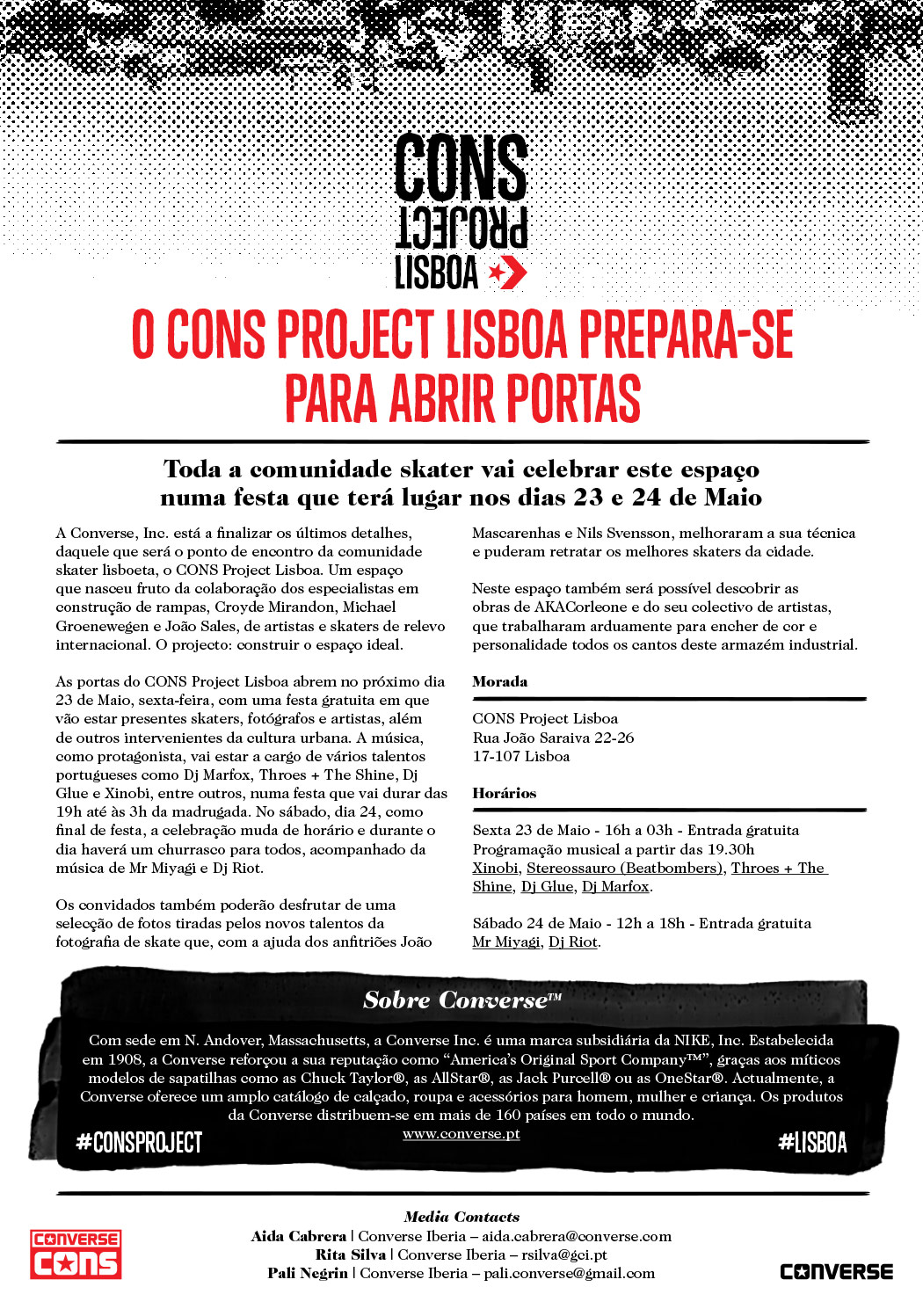 Converse is ready to kick off with CONS PROJECT in Lisboa, an event aiming to inspire a new breed of artists and creatives . It all happens this Friday & Saturday (23/24 May) with lot’s going on, so expect skate, photography, music and of course urban art to take part of this event. AkaCorleone has been in charge of painting the space and has invited more artists to be part of this project. More info inside.