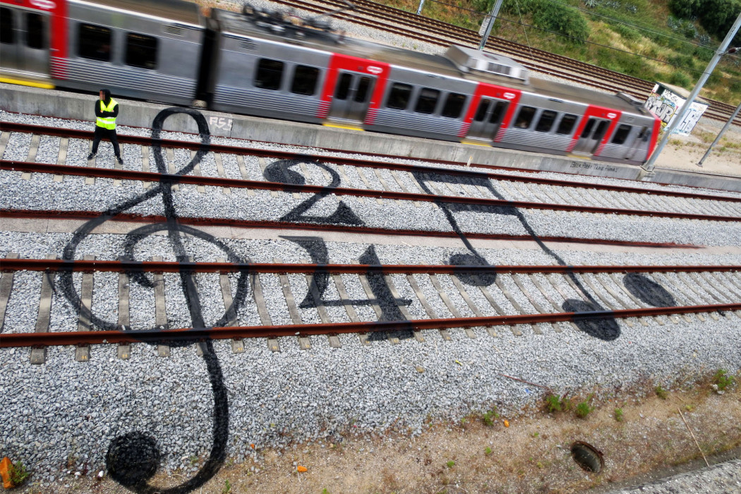 Artist Bordalo II continues to produce new pieces based on the railway tracks project, with yet another work executed in Sintra titled “Music on line”.
