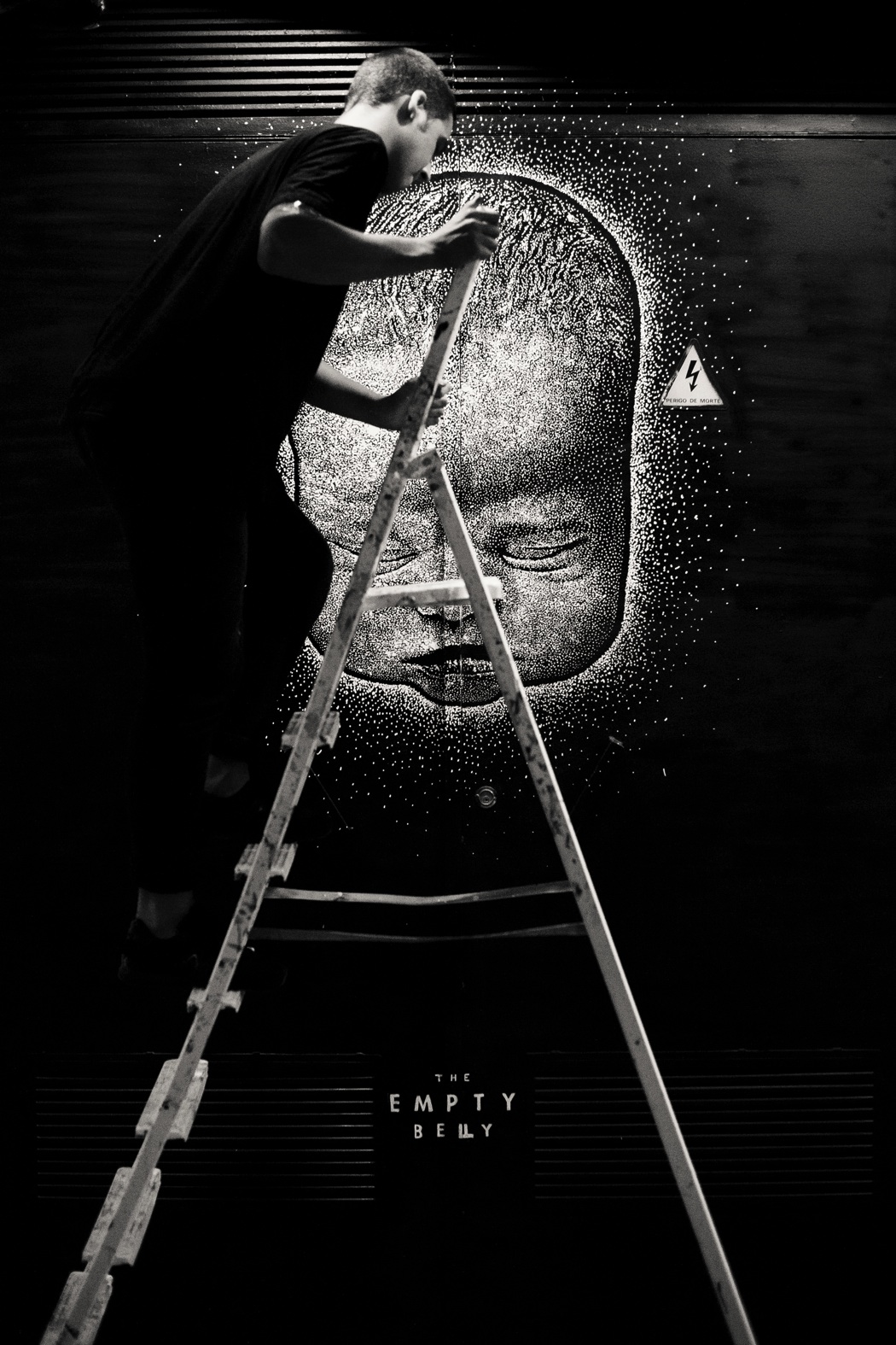 The Empty Belly thanks to WOOL off fest, has left a new piece in Lisboa, in one of the LXFactory buildings. One of his signature pieces that deserve a closer look in real life.