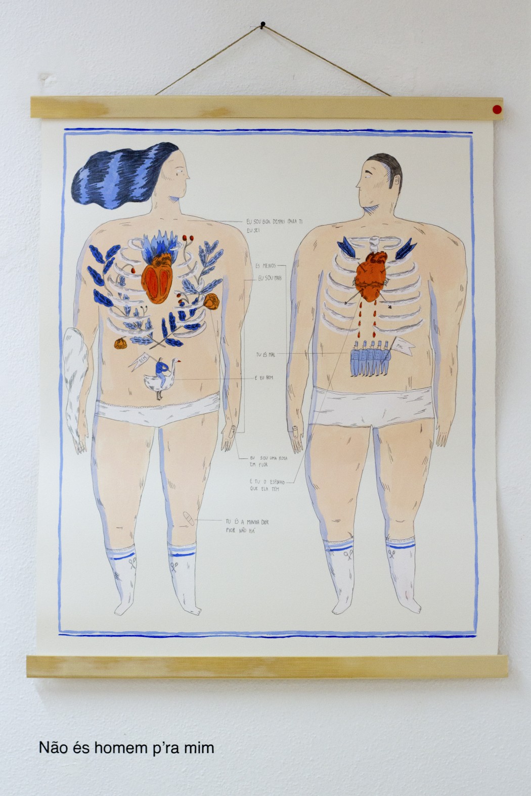 Abysmo gallery is currently hosting “Eu tenho dois amores” (I have two loves) by Maria Imaginário and Mariana Miserável. This is without a doubt the funniest show I’ve been to lately, and that alone should convince you to pay this exhibition a visit. But if that isn’t enough, you’ll love all the Portuguese pop music references in the artwork titles. Enjoy… #imaginariomiseravel