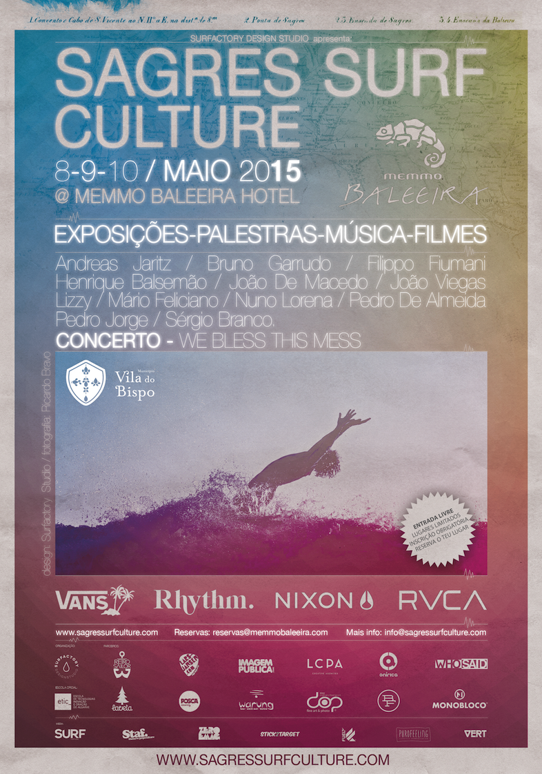 Tem como parceiros Lars Jansen, Onírica, BF, DOP, Imagem Pública, Monobloco, LCPA, Posca, Warung, RetroSailor, Laveta. A ETIC Algarve é a Escola Oficial do evento. Os media partners são a SURFPortugal, Zero Emag, Stick2Target, Staf Magazine, FUEL TV, Vert e Puro Feeling. Mais informações e programa completo em www.sagressurfculture.com