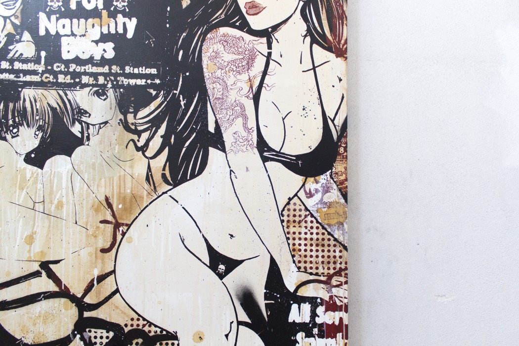 At LXFactory, the show “The Exhibitionists” is running for its last day in FUNarte gallery, and before they leave, we’re bringing you a set of photos from the exhibition. With works from Faile, Hu Ming, Hush, Lady Aiko, Saki & Bitches, Pedro Zamith, Glam, Vanessa Teodoro, Paul Neberra, Mass Petrone and Diogo Dória, expect provocations and erotic thoughts. Not advisable to the light hearted.