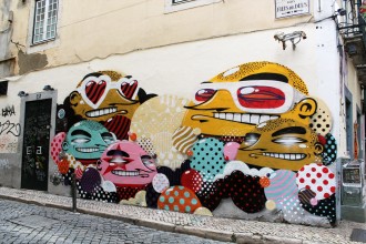 New piece by LowBros in Bairro Alto, with their unique style covering the door of Teatro do Bairro.
