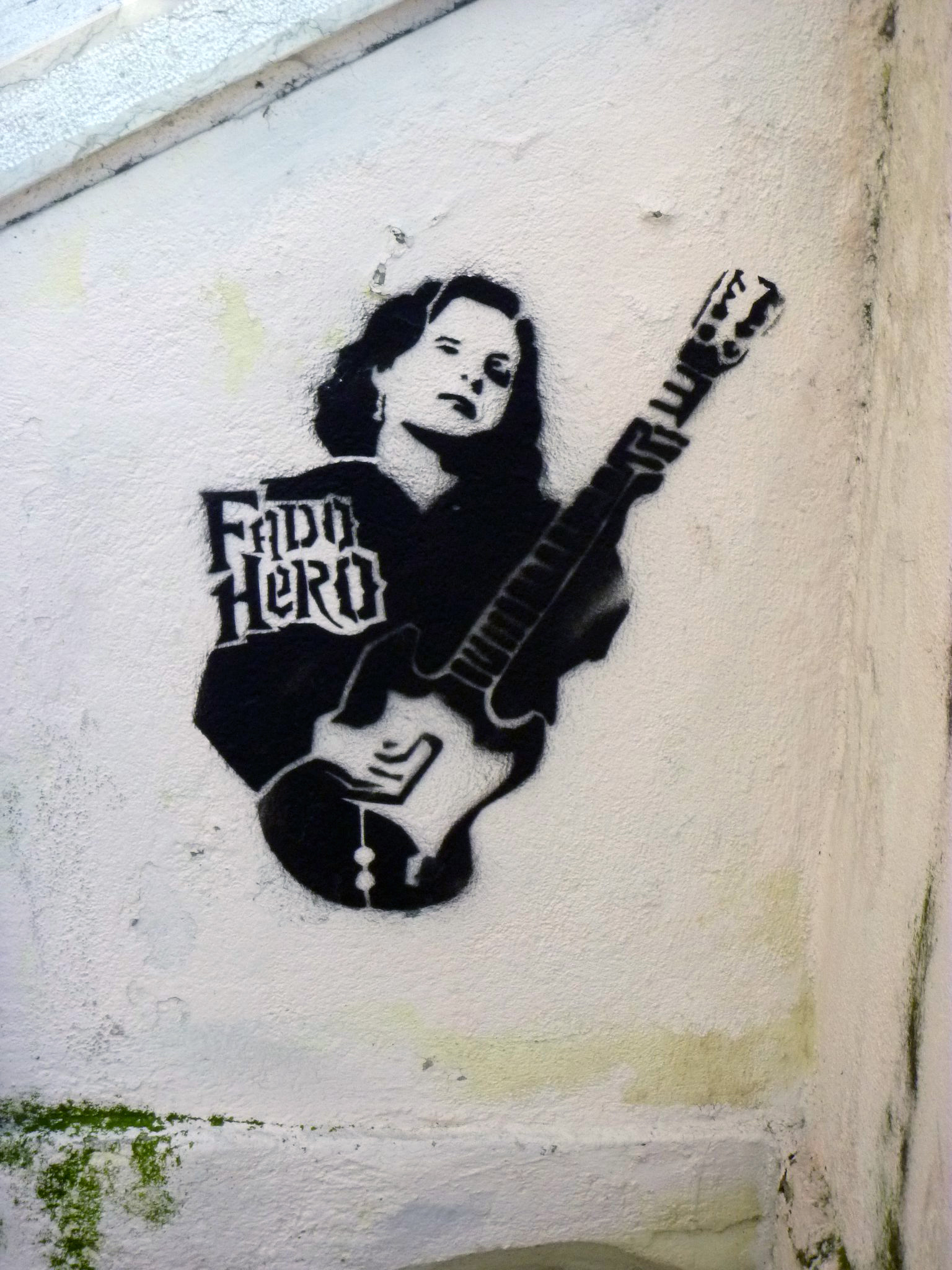 A piece inspired in the famous videogame merchandise Guitar Hero/Band Hero, merging with our very own Amália and the traditional Fado. Stencil piece found…