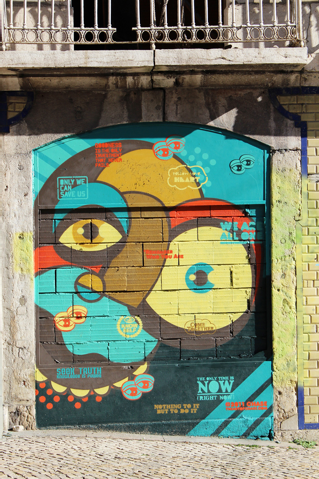 Apparently Chase, a Belgian artist currently living in LA just stopped by Lisboa and painted this wall in the streets.
